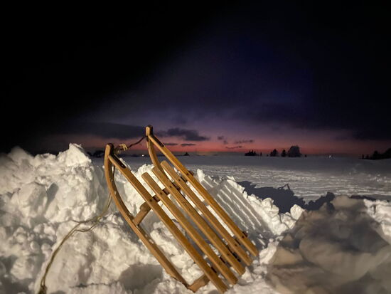 Bei schönen Winterwetter sind wir - ausgerüstet mit Schlitten und Taschenlampen - Richtung Hinterarni gestartet. Einige von weiter unten, Andere von weiter oben.